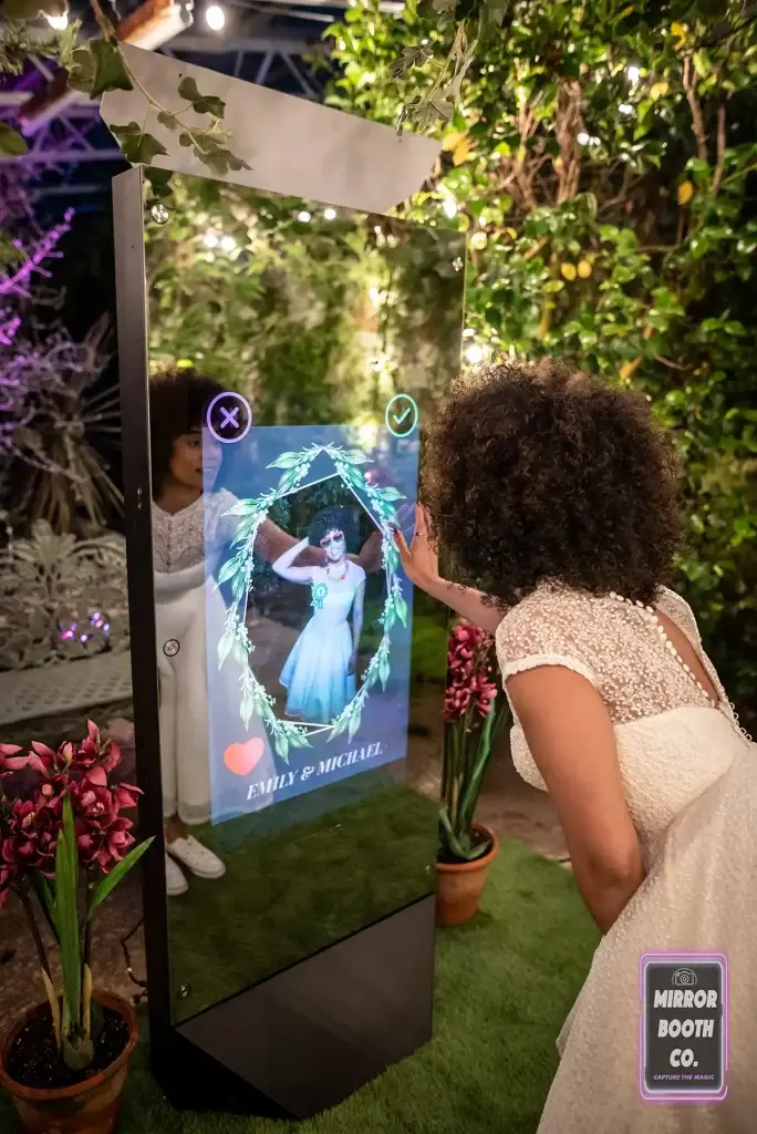 Our attendant delivers and assembles the Mirror Booth experience at your event. Customize your setup with red carpets, velvet ropes & stanchions, flower walls, and much more.